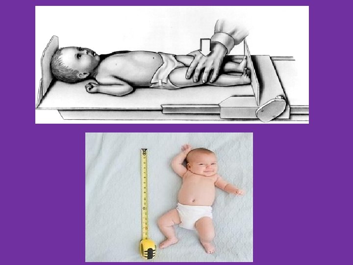 3 - Length Average birth length --- 50 cm First 6 months --- 2 -3 cm/month Second 6 months ---- 1. 5 cm /month Average length at one year --- 75 cm After age of 2 years the following formula calculates the height Height in cm = age in years x 5 + 80