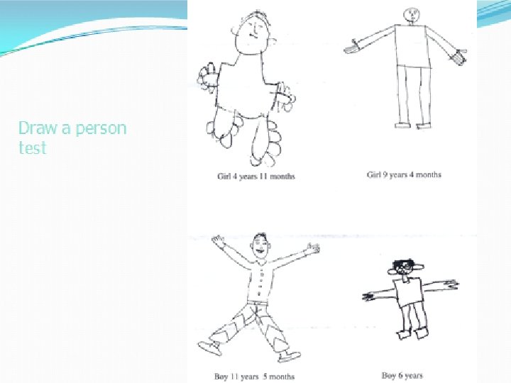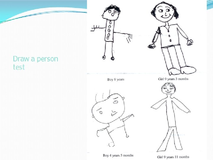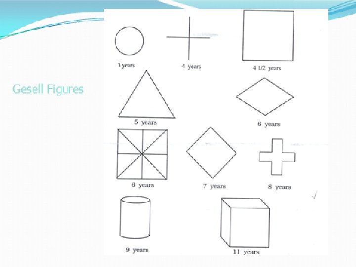 Assessment of development 1. Ask mother about age of starting milestones especially the recent one. 2. Interact with the child and observe him. 3. Screening tests: A- Gesell Figures B- Good enough Draw- a Person Test