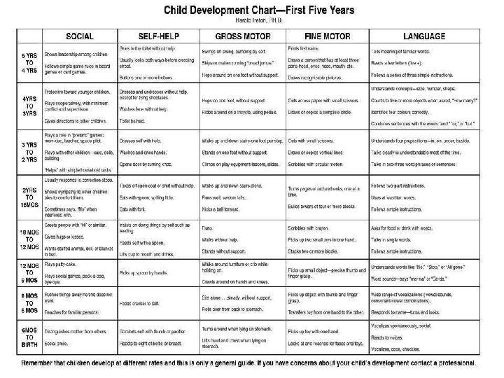 Head circumference at birth is equal 34 to 36 cm. Age Infants Birth-6 months HC Monthly gain: 1. 5 cm Monthly gain: 0. 5 cm 6 -12 months Children 1 -5 years 6 -15 years Yearly gain: 1 cm Yearly gain: 0. 6 cm