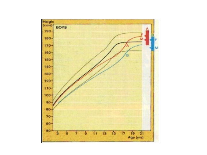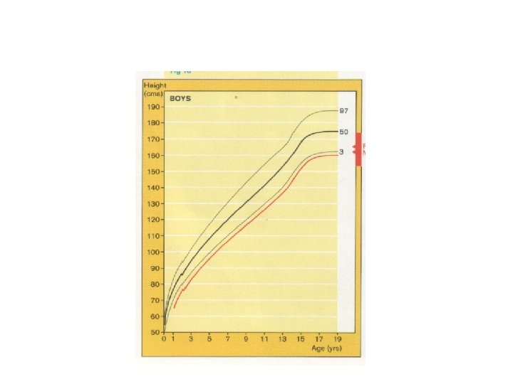 • • • A child’s current centile must be evaluated in terms of: Genetic background Gestational or past medical history Environment Physical findings Growth pattern since birth Current growth rate(height velocity)