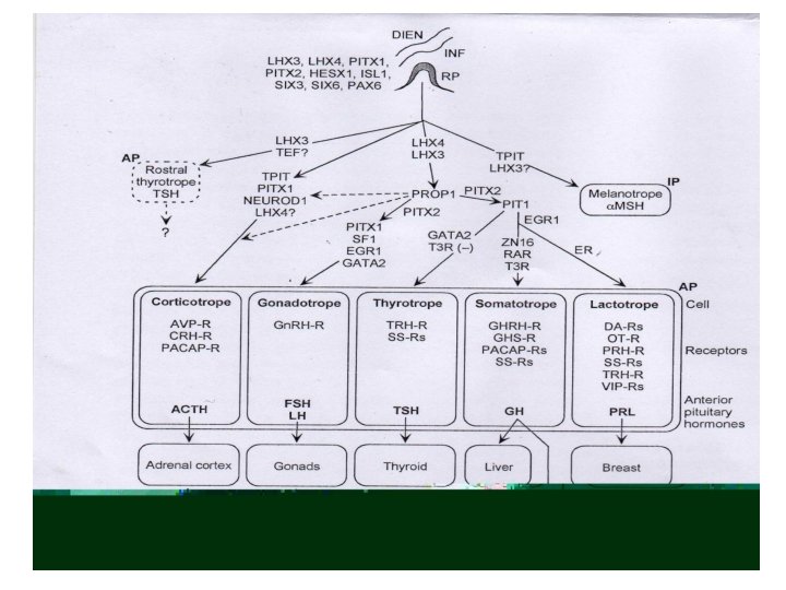 3 -Endocrine abnormalities • CNS or hypothalamic abnormalities which affect regulation of the anterior pituitary • Anterior pituitary disorders, either developmental or acquired which can affect synthesis or secretion of growth hormone or the trophic hormones(TSH, LH, FSH, ACTH) • Primary dysfunction of the target organs e. g. Thyroid, adrenal or gonadal disease