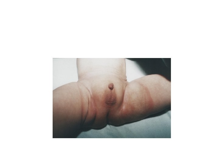 Clinical features of GHD • • • Growth failure Normal birth weight and birth length Skeletal proportions normal for age Somewhat overweight for height(increased subcutaneous fat) Head circumference normal Disparity between the size of face and the calvarium: “doll like” “cherubic” facies most pronounced in panhypopituitarism (crowding of the facial features to the centre of the face suggesting maxillary hypoplasia)- frontal bossing, saddle nose Skeletal maturity delayed High pitched voice Males: penis, scrotum small, hypoplastic testis Hypoglycemia