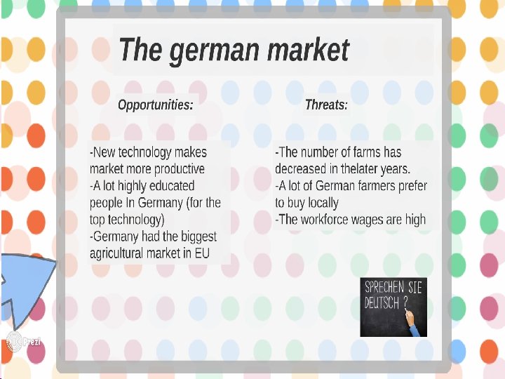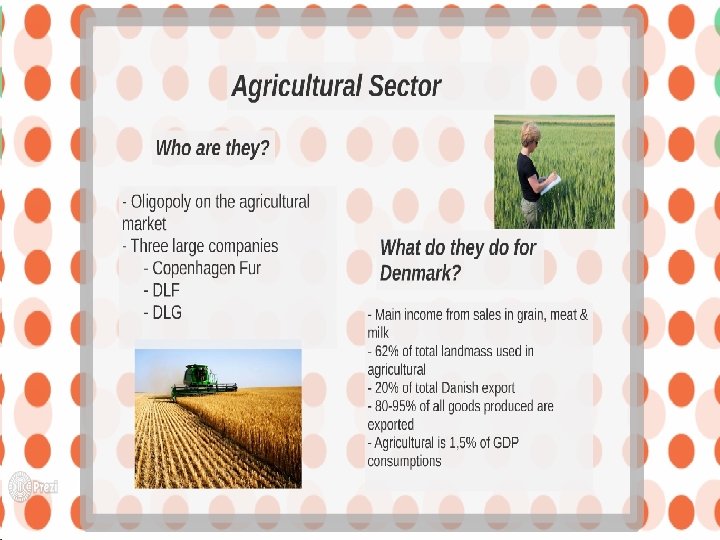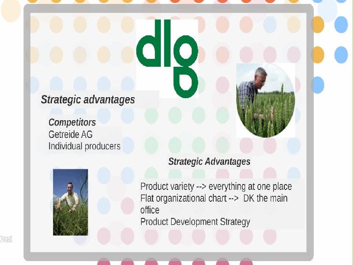 They strive to do everything smarter, faster and more efficiently in innovation for grains and energy efficient farming machines in order to insure that they can constantly develop and deliver new services and products to excising and new markets. Product Development ( new products + existing market) By creating grains that can grow in different climate and withstand harsh weather conditions, the most effective fertilizers to help them grow as well as advice on the most effective way of farming crops for the largest crop sizes possible. Their main focus in service and energy is to create more effective machinery and logistics solutions in order for DLG to save costs and create a higher turnover for both customers and owners. Market Penetration (existing products + existing markets) By acquiring small companies under its umbrella, DLG is increasing the share of current markets with its current product range. DLG is focused on 9 different activities ( animal nutrition, plant cultivation) related to the agricultural industry and all of them are managed by a lot of other companies that work under the main company, DLG. The main benefit is to stay current and continue to create value for owners and customers by Internalization and interaction within subsidiaries and collaboration with Universities for the newest of technologies.
