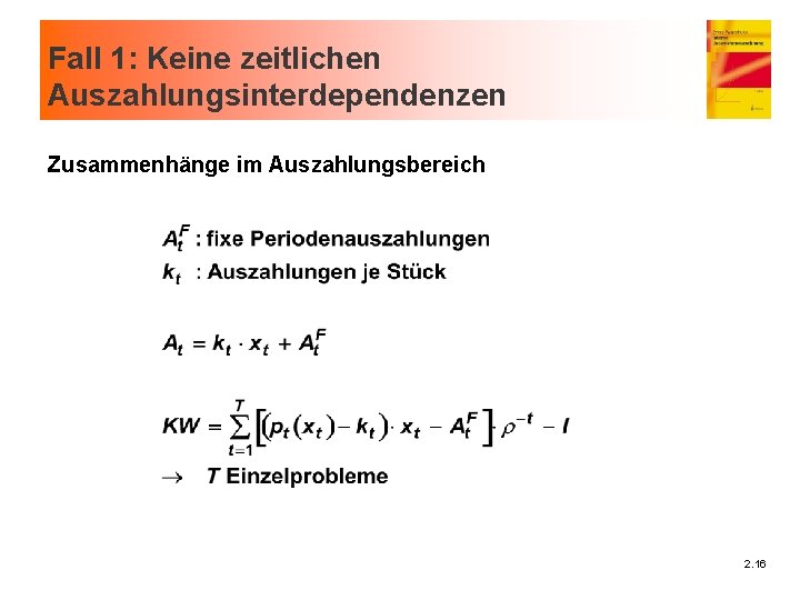 Fall 1: Keine zeitlichen Auszahlungsinterdependenzen Zusammenhänge im Auszahlungsbereich 2. 16