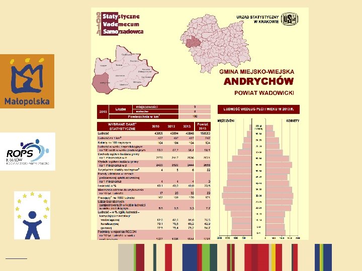 Diagnoza sytuacji w gminie § Serwisy Głównego Urzędu Statystycznego (Strona US w Krakowie, Bank Danych Lokalnych, Baza Demografia) § Dane ośrodka pomocy społecznej § Dane PCPR § Dane Małopolskiego Obserwatorium Polityki Społecznej § Dane Powiatowych Urzędów Pracy § Dane Wojewódzkiego Urzędu Pracy
