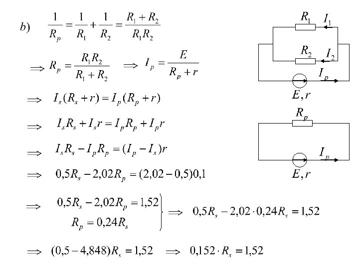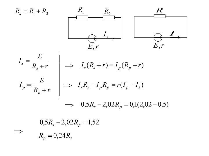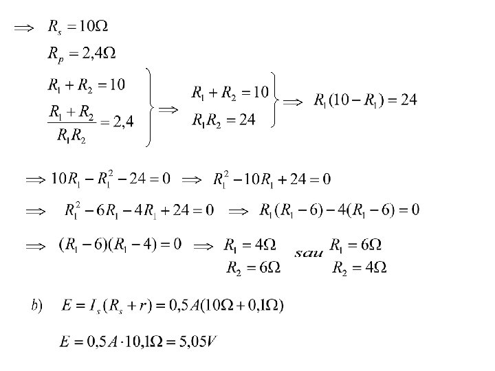 Un circuit electric contine doua rezistoare si este alimentat cu un generator electric cu rezistenta interioara r=0, 1Ω. Daca rezistorarele sunt legate in serie, intensitatea curentului electric prin circuit este 0, 5 A. Daca se leaga in paralel, intensitatea curentului electri prin ramura principala este 2, 02 A. Cunoscand ca raportul rezistentelor echivalente a rezistoarelor din circuit este 0, 24, aflati: a) rezistentele rezistoarelor din circuit; b) tensiunea electromotoare a generatorului din circuit. ( FIZICA-400 probleme şi 40 teste; D. Bacrău – Ed. Corint-Bucureşti-2003)