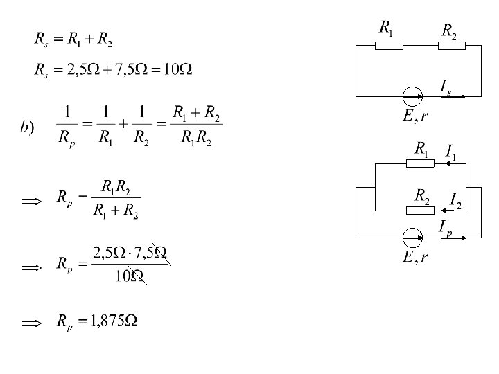 Circuitele electrice din figură conțin două rezistoare R 1=R 2=4Ω și sunt alimentate , pe rând , de același generator electric. Primul corcuit este parcurs de un curent electric I 1=1, 8 A, iar al doilea de un curent electric I 2=1 A. Aflați: a) rezistența interioară a generatorului; b) care circuit absoarbe putere mai mare.
