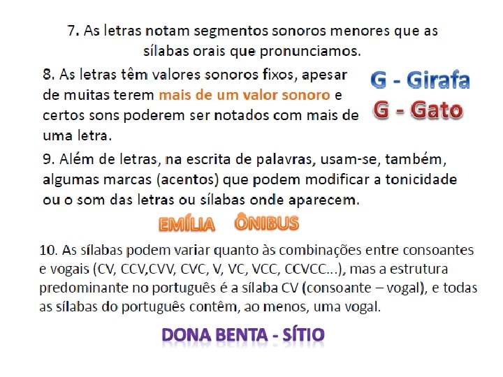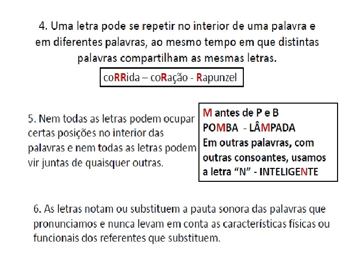 Ø O que as letras notam (registram)? As características dos objetos ou sequência de partes sonoras das palavras? Ø Como as letras criam notações?