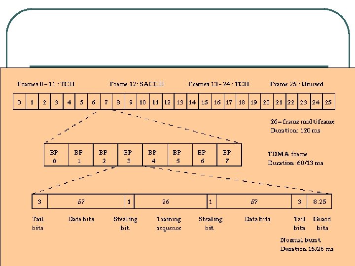 Traffic Channel l l Transfer either encoded speech or user data Bidirectional Full Rate TCH • Rate 22. 4 kbps Half Rate TCH • Rate 11. 2 kbps