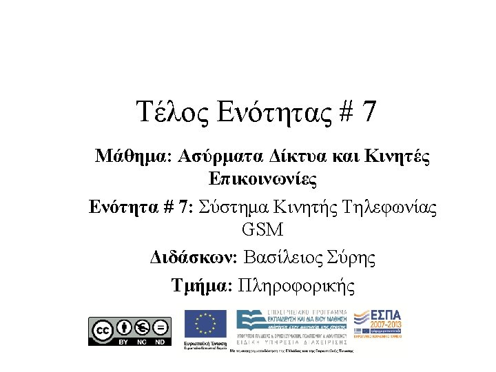 GSM identifiers • IMSI: non-dialable number § MCC Greece: 202 § Bound to SIM • TMSI: Temporary MSI (confidentiality) • MS ISDN number (dialable) § Different MS ISDN can be associated to same SIM