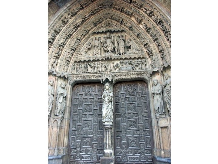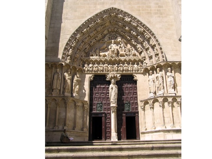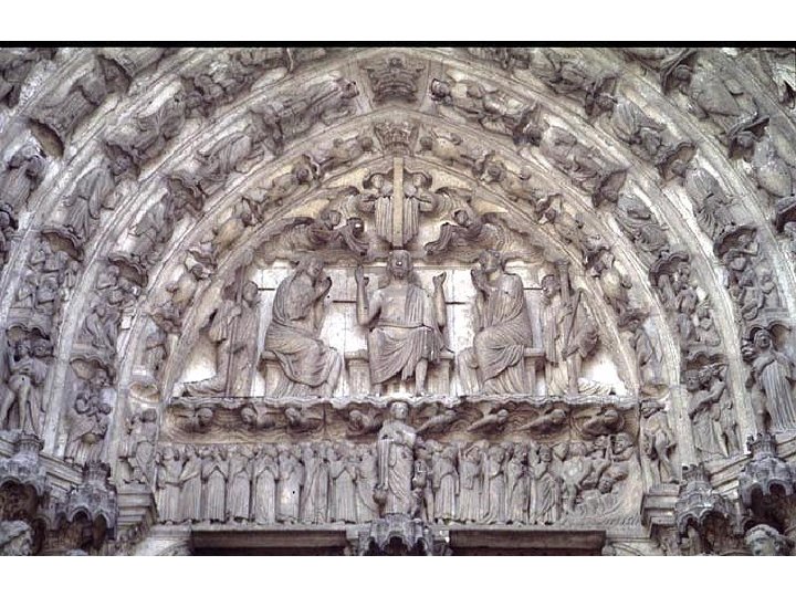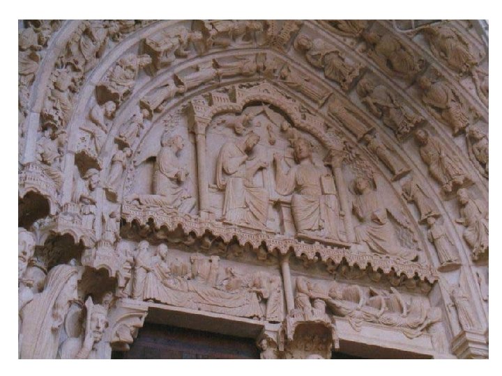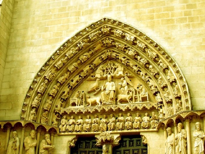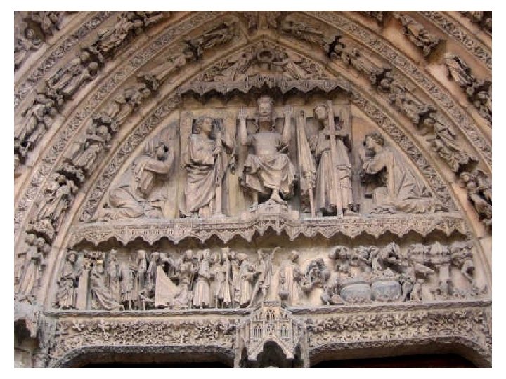 Arquivoltas apuntadas. Esculturas siguen Dirección del arco División en Franjas. Comunicación Entre figuras Características generales. Tímpano de Santa Ana. Notre Dame de París.