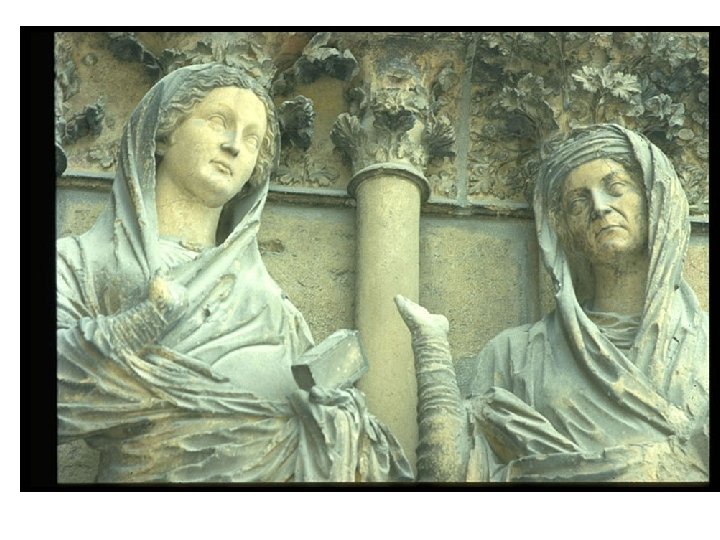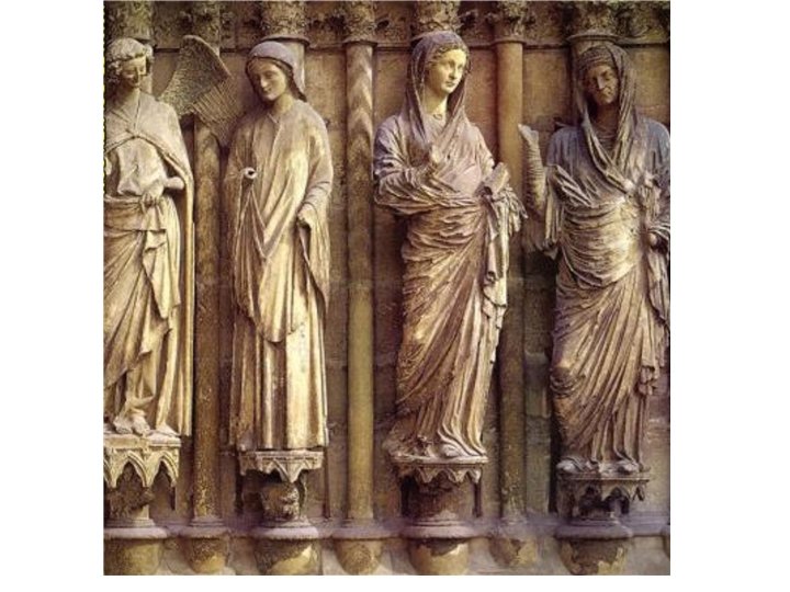 Gran fuerza expresiva Individualización De los rostros Sonrisa arcaica Liberación del Marco arquitectónico Comienzos Del Gótico Formación de grupos. Actitudes dialogantes Naturalismo (ej. : Pliegues) Gusto por lo secundario Y anecdótico Características generales. Anunciación y Visitación. Catedral de Reims