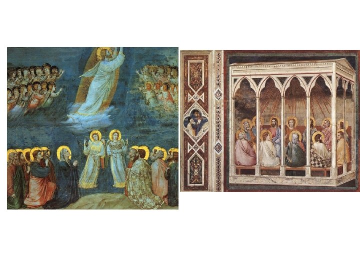 TRADICIÓNS PÌCTÓRICAS • Existirán dúas tradicións pictóricas iniciadas por Giotto e Van Eyck (escola florentina e flamenga) que coñeceron un desenvolvemento paralelo e autónomo. Son precursores da pintura moderna ao conseguir representar a noción de espazo nunha superficie plana aínda que con solucións diferentes: • -a forma, a liña, o volume polos florentinos • -a representación detallada de todo o que nos rodea, a valoración do papel da luz e a cor polos flamengos. Pero buscando, as dúas escolas, a representación da realidade. • Con eles comeza a esixencia de que as artes plásticas (escultura e pintura) reproducisen a realidade. • Esta esixencia excepcional na historia da arte, será a máxima aspiración do Renacemento e tradición fundamental das artes plásticas de Europa ata o século XX. Esta conquista da realidade realízana GIOTTO e VAN EYCK, dous pintores que, partindo de tradicións culturais distintas e con métodos diferentes, conseguiron representar a noción de espazo nunha superficie plana. As súas pinturas representan a culminación da arte medieval e, ao mesmo tempo, anúnciannos o Renacemento.