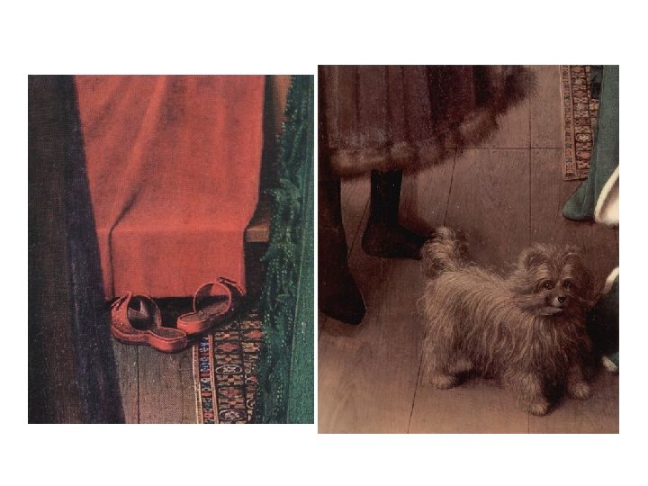 CONTEXTO • Na baixa Idade Media, os Países Baixos flamengos (Holanda e norte de Bélxica) viven unha evolución distinta á do resto de Europa. En Flandes, o desenvolvemento das actividades mercantís (Amsterdam era o centro do comercio mundial de panos) provoca a aparición dunha puxante burguesía, unha nova clase social con suficiente poder económico como para permitirse o luxo de encargar obras de arte pero con actitudes estéticas moi distintas ás da nobreza ou o clero, tradicionais patróns da creación artística. • A pintura flamenca é unha pintura burguesa, intimista, unha pintura que, sen abandonar a temática relixiosa, introduce novas preocupacións: un renovado interese polo retrato, o gusto pola exhibición dos interiores domésticos, os mobles e obxectos que testemuñan o status social dos seus posuidores. Unha pintura que, sen abandonar o simbolismo medieval (agora "disfrazado") exponse os problemas da representación tridimensional descubrindo pola súa conta a perspectiva matemática e a perspectiva aérea que serán os grandes logros do Renacemento italiano. • Os principais representantes da escola flamenga (os irmáns Van Eyck, Roger Van der Weyden. . . ) coñecidos como os "primitivos flamengos", florecen nos últimos anos do século XIV e os primeiros do XV, coetáneos xa da primeira xeración do Renacemento italiano (Masaccio, Piero da Francesca, Mantegna. . . ). • Con todo, a pesar das novidades que supón no terreo da representación tridimensional e do realismo, a súa pintura segue sendo medieval pola súa concepción simbólica e porque descoñece a temática clásica, o compoñente mitolóxico, fundamental no Renacemento.