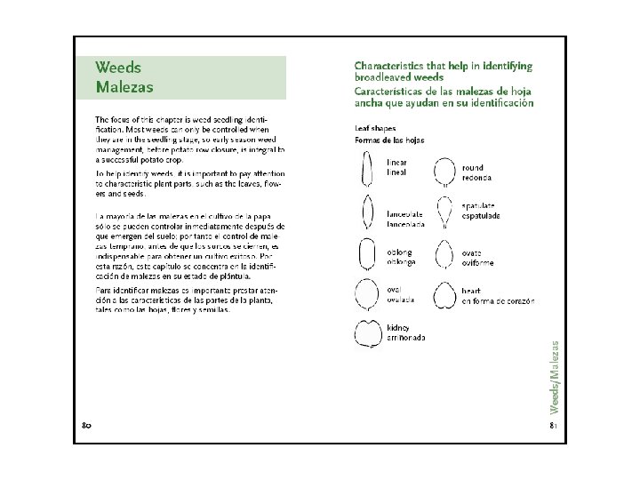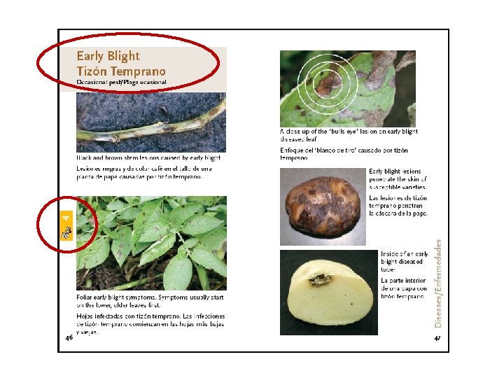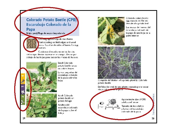 El Monitoreo • Inspeccione un mínimo de 20 plantas por cada 10 – 20 acres • Inspeccione las hojas, los tallos las raíces y las papas