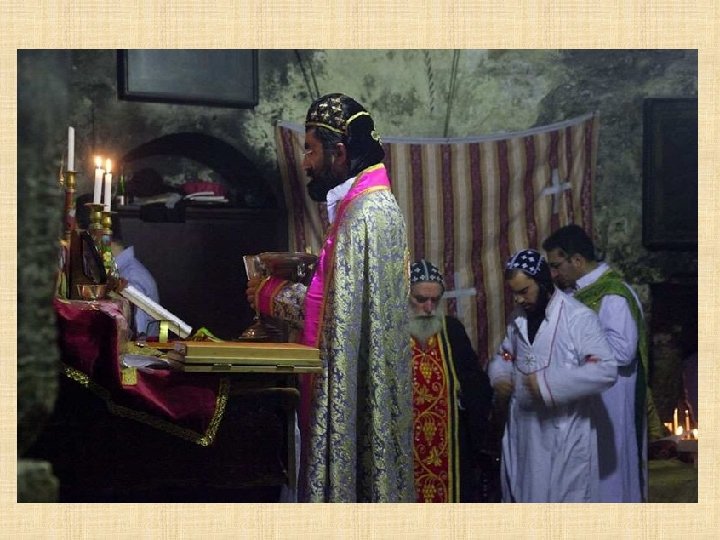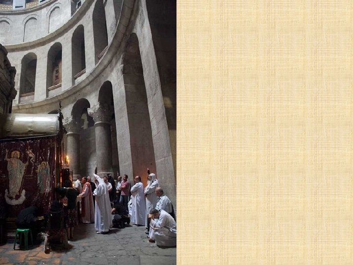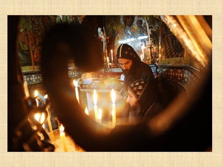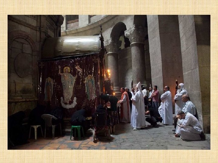 COPTOS La Iglesia ortodoxa copta, que recuerda a la tradición alejandrina como la etíope y eritrea, tiene sus orígenes en Egipto. Una tradición marca la llegada a Palestina en el siglo IV, siguiendo a Santa Elena Madre de Constantino aunque, con toda probabilidad los primeros contactos con los Lugares Santos ocurrieron a través de experiencias de vida monástica.