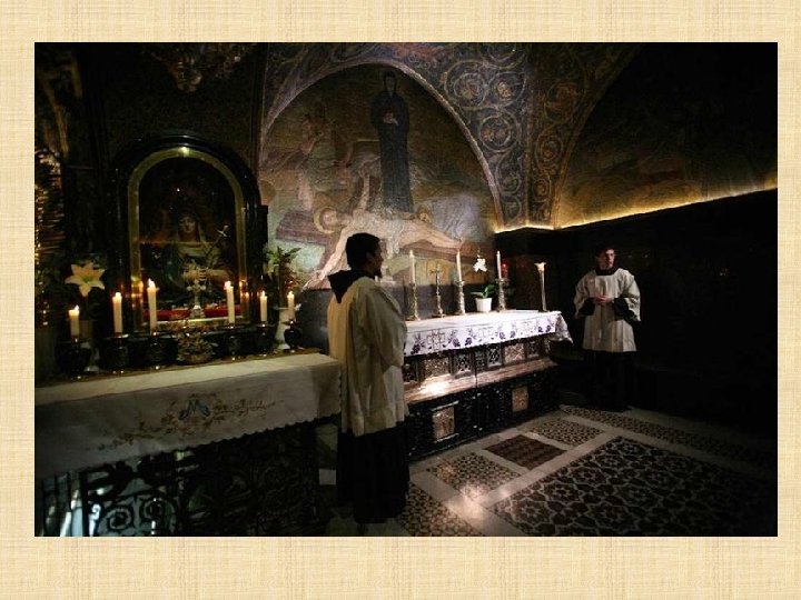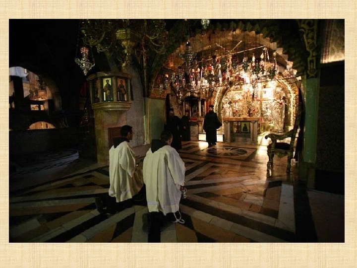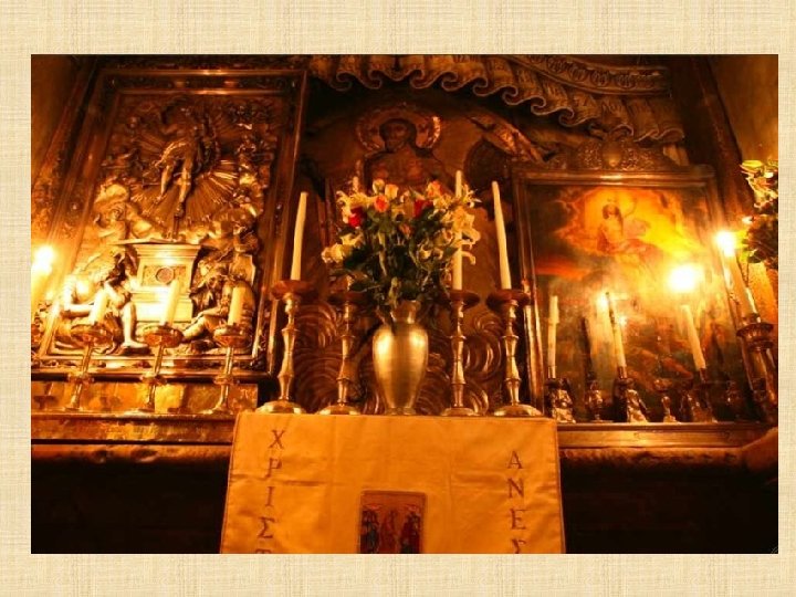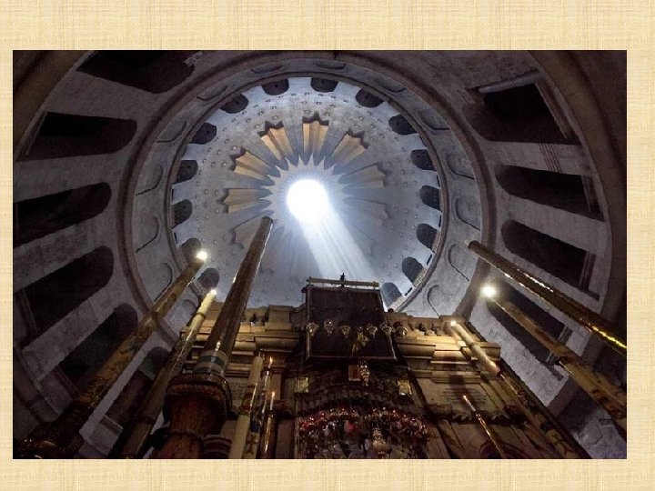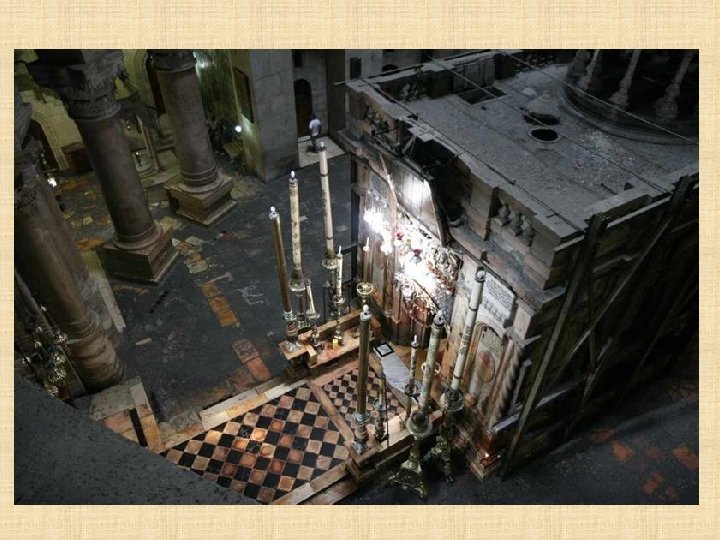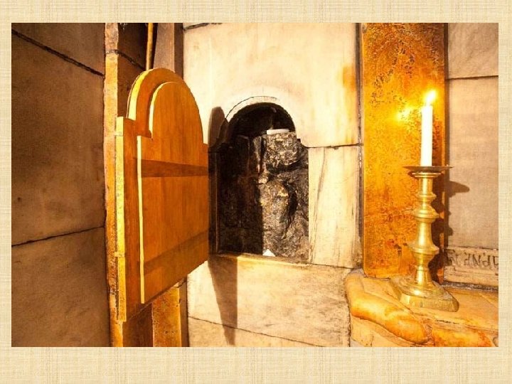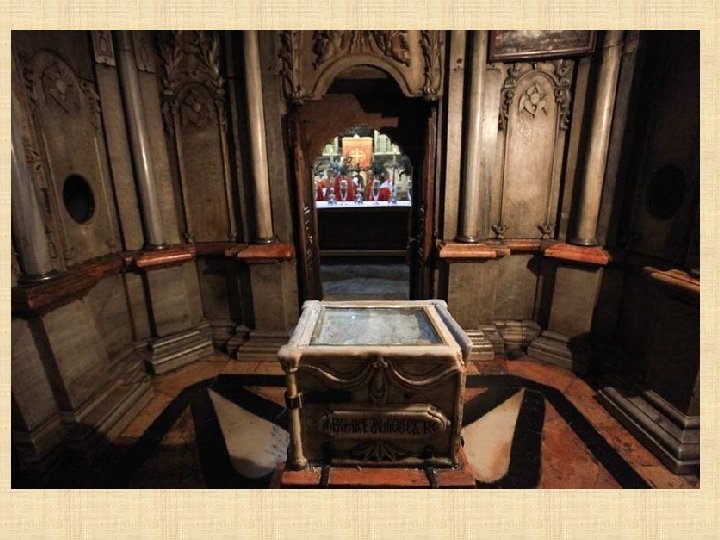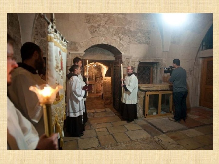 Cámara del Sepulcro "No teman. Ustedes buscan a Jesús de Nazaret, el Crucificado. Ha resucitado, no está aquí. Miren el lugar donde lo habían puesto. " (Marcos 16, 6)