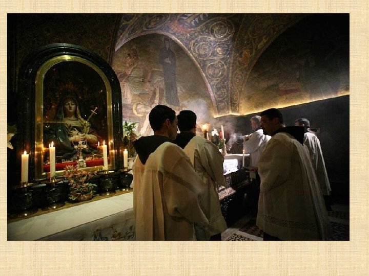EN ESTA ESTRECHA CAVIDAD DE LA ROCA SANTA ELENA ENCONTRO LA CRUZ DE JESUS, LOS CLAVAS Y EL TITULO DE LA CONDENA(Jn 19, 19 -22) LUGAR PERTENECIENTE A LOS FRANCISCANOS