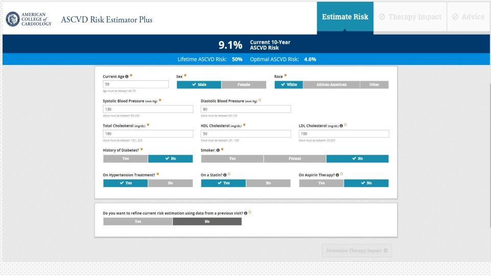 Umbrales más bajos de PA para tratar hipertensos • El tratamiento de la HTA se basa no solamente en el nivel de PA sino también en el riesgo CV • Fuerte recomendación de uso de terapia no farmacológica en pacientes con riesgo CV a 10 años < 10% y elevación de PA en etapa 1 (PA 120139/80 -89 mm. Hg). Esto limita el uso de drogas en pacientes previamente catalogados como normotensos o pre-hipertensos