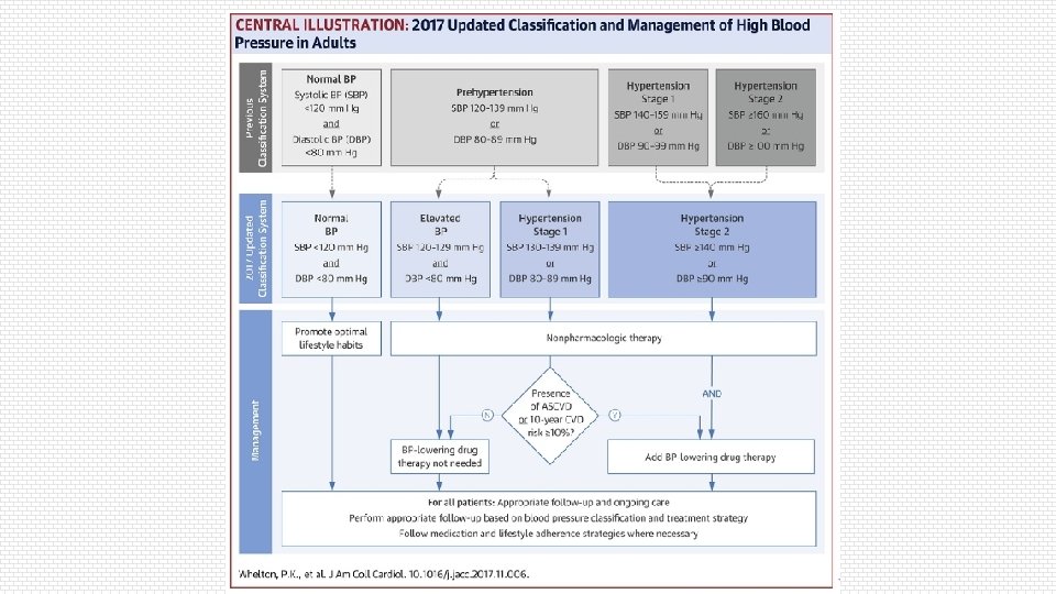 Aspectos relevantes de Guías ACC/AHA 2017 • 1) Nueva definición de Hipertensión arterial (afecta la prevalencia) • 2) Umbrales de PA más bajos para iniciar tratamiento • 3) Metas más bajas de PA para pacientes en tratamiento antihipertensivo • 4) No hay etapa 3 y tampoco se menciona el concepto de PA sistólica aislada