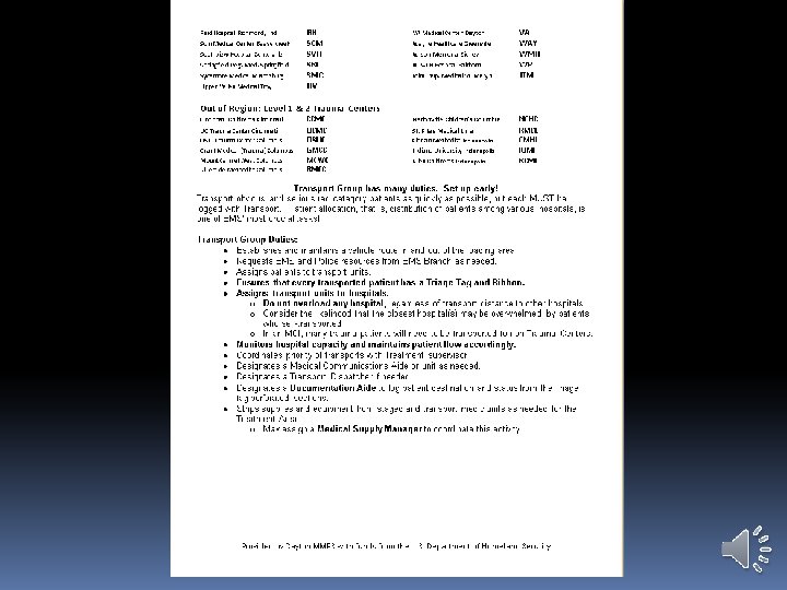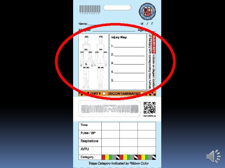 DAYTON MMRS TRIAGE MATERIALS Triage Ribbon Kit: Triage Ribbon Case (pre-assembled with six rolls of colored ribbons) Scissors Flashlight Grease pencil SALT Triage flowchart Place where each agency can mark the agency and apparatus nomenclature