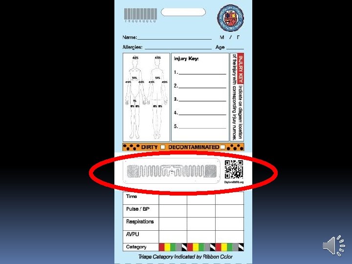 DAYTON MMRS TRIAGE MATERIALS Three versions of Triage Tags: “Live” tags: �Expensive �White �Synthetic paper �Bar codes, numbers, & RFID tags �Hospitals can use the bar code or the RFID tags but the viewable tag number matches the bar code, not the RFID