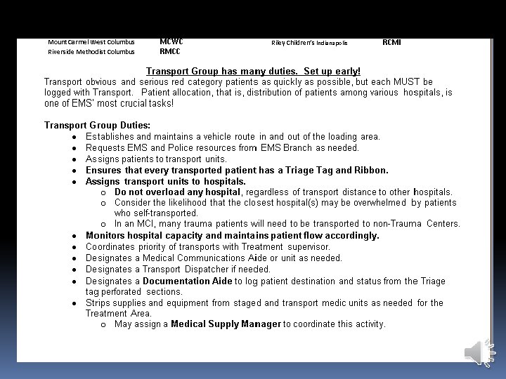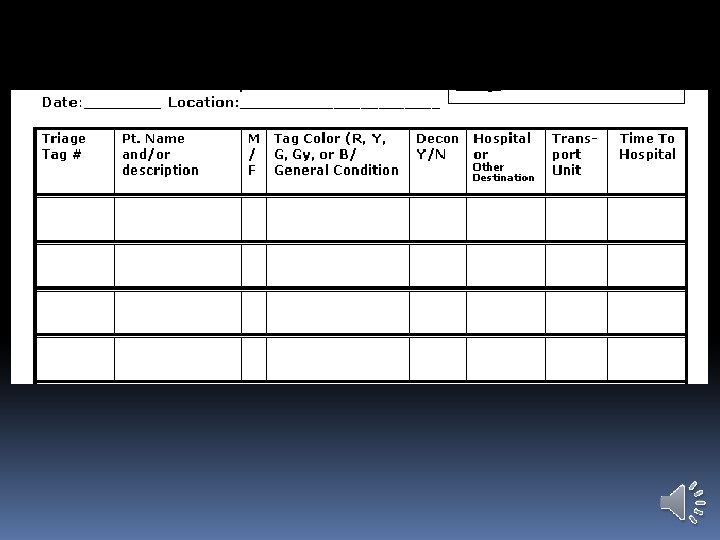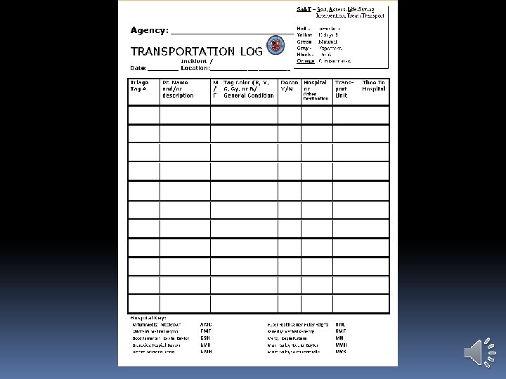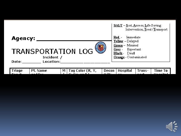 Using Dayton MMRS Triage Materials: Transport Log