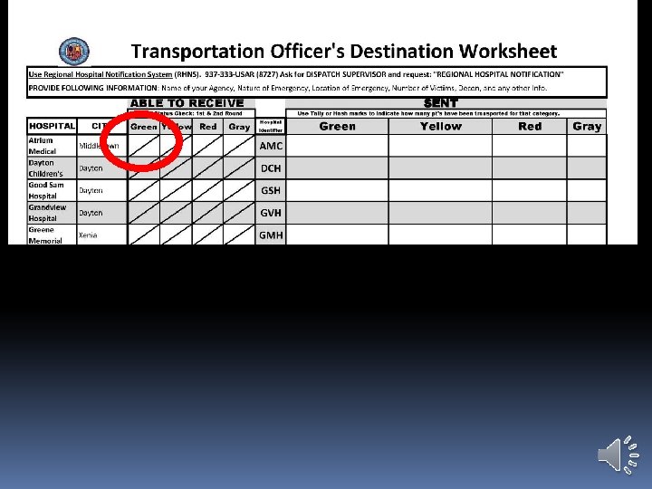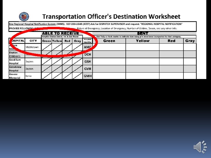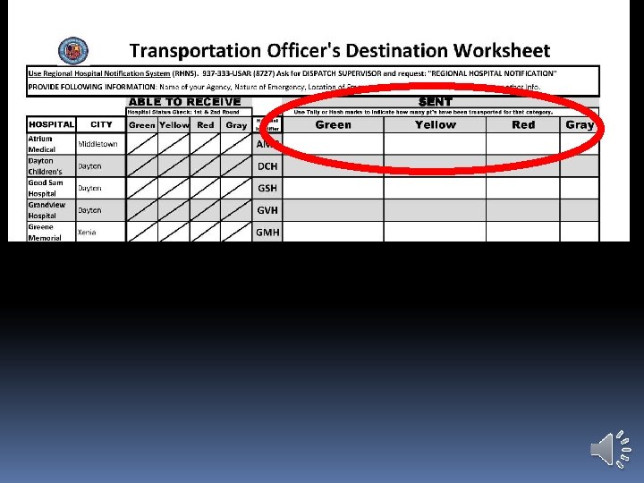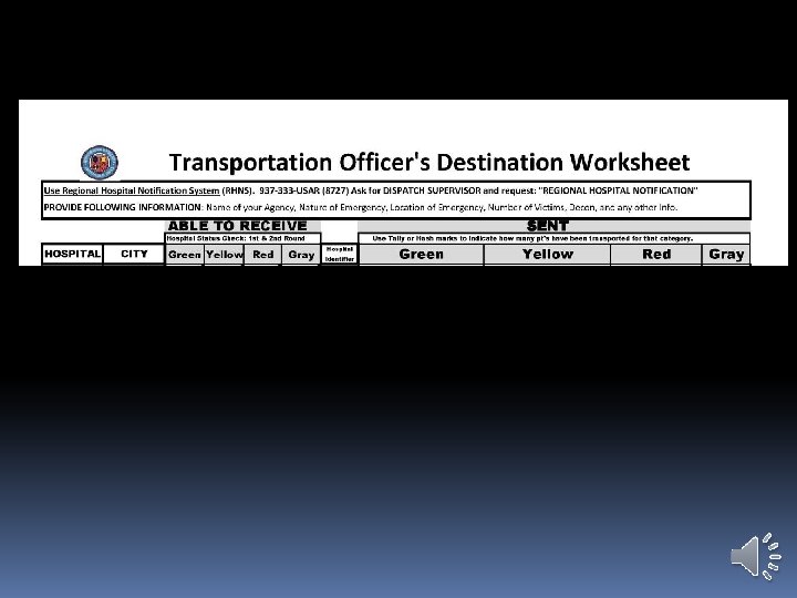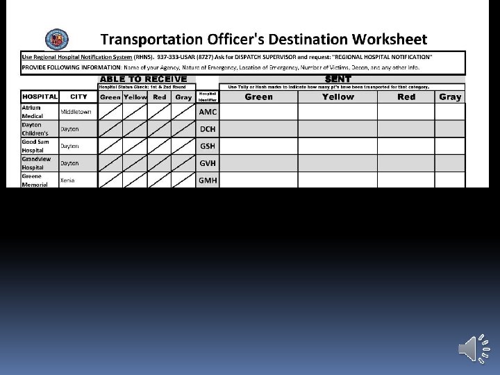 Using Dayton MMRS Triage Materials: Transport Worksheet