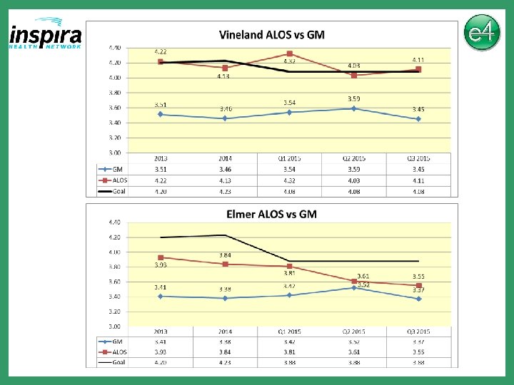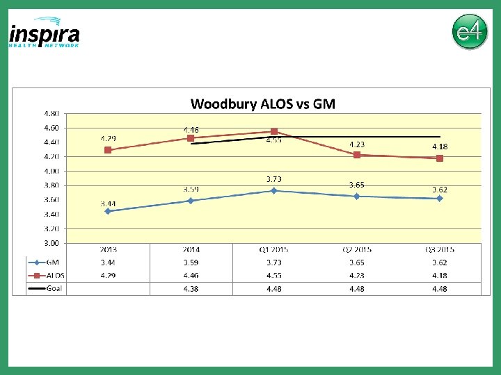 Average Length of Stay YTD and Goals ALL PAYER Campus YTD 12/31/14 LOS Goal LOS 2014 YTD 9/21/15 LOS Goal LOS 2015 Vineland 4. 13 4. 23 4. 15 4. 08 Elmer 3. 84 4. 23 3. 70 3. 88 Woodbury 4. 46 4. 38 4. 43 4. 48 Medicare Campus YTD 12/31/14 LOS YTD 9/21/15 LOS Goal LOS 2015 Vineland 5. 08 4. 81 4. 93 Elmer 4. 41 4. 11 4. 47 Woodbury 5. 22 4. 99 5. 32