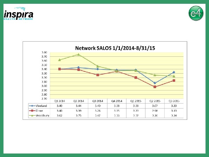 About Inspira § Inspira Health Network is a charitable nonprofit health care organization formed in November 2012 by the merger of South Jersey Healthcare and Underwood. Memorial Hospital. § The Network comprises three hospitals (Vineland, Elmer and Woodbury Campuses), four multi-specialty health centers and a total of more than 60 locations. § 1, 100 physicians and other health care providers provide evidence-based care to help each patient achieve the best possible outcome.