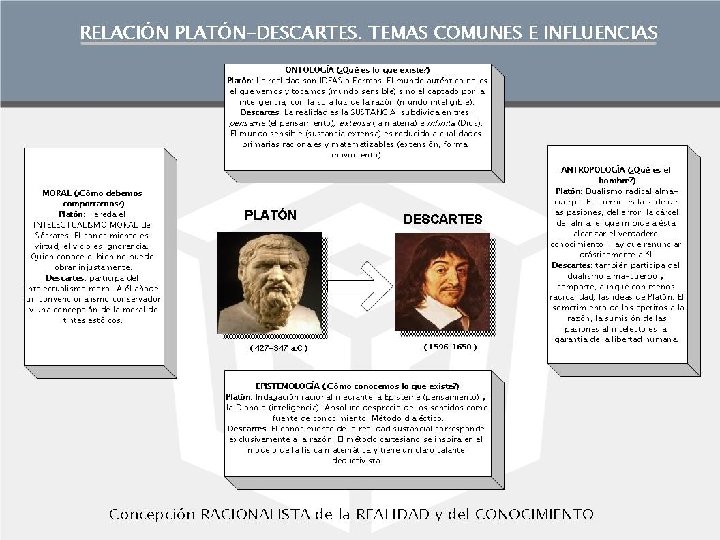 Alegoría de la caverna: Representa a los hombres enfrascados en el conocimiento del mundo sensible (esclavos encadenados en una caverna) y la necesidad de reflexionar filosóficamente sobre el mundo de las IDEAS que representan lo universal y necesario (fuego que ilumina los objetos reflejados en el fondo de la caverna). 20