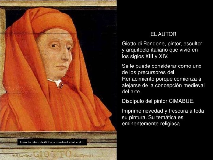 Pintor gótico Giotto (1267 -1336) Antecesor del renacimiento italiano, comenzó a dotar de tridimensionalidad a sus composiciones pictóricas. Los artistas empiezan a buscar la sensación espacial a través de la observación de la naturaleza.