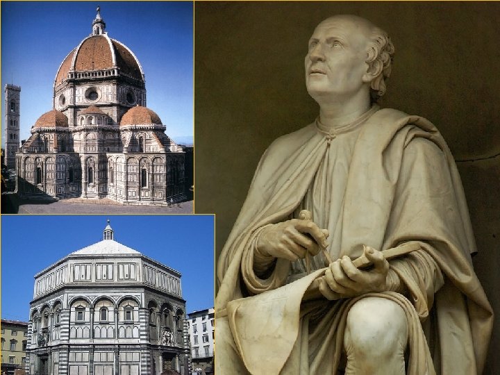 Experimento: Pintó en una tabla de 30 centímetros una imagen en perspectiva del baptisterio que se había levantado en frente de la catedral de Florencia. En la parte superior de la tabla, colocó plata bruñida para reflejar el paso de las nubes. Abrió en la parte de atrás de la tabla un agujero para colocar el ojo, desde la posición que ocuparía en el umbral de la puerta de la catedral. Ya en esa posición, puso su ojo en el agujero y con la otra mano sostuvo un espejo reflejado hacia la superficie pintada del cuadro.
