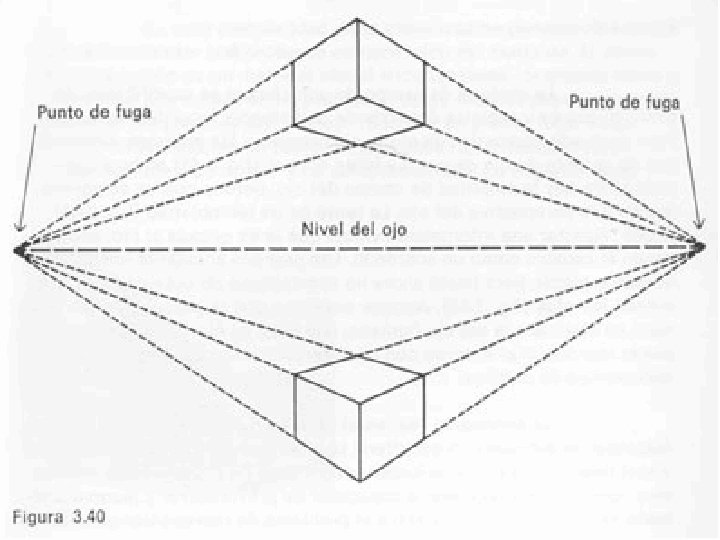 Perspectiva a dos puntos de fuga La perspectiva a dos puntos de fuga se le conoce como Perspectiva oblicua. Se genera cuando el objeto está parcialmente ladeado o de tres cuartos, y solo un eje espacial es paralelo al plano de proyección. Sus rectas con esa dirección se proyectan realmente paralelas. La perspectiva de dos puntos o perspectiva con dos puntos de fuga se utiliza cuando las esquinas de los objetos están de frente al observador. Este es el método más utilizado para dibujar objetos isométricos.