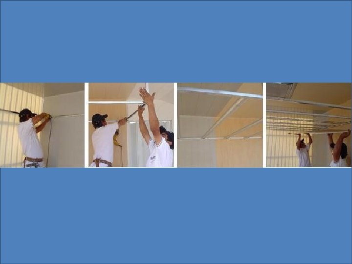 Perfil metálico perimetral Consiste en una lámina metálica en L o U, generalmente de hierro o aluminio pintado asegurada a la pared con tornillos o puntillas. Por un sistema de ganchos o pequeñas láminas en forma de U con un orificio inferior, se aseguran las cuerdas y se corren las obras facilitando la exactitud en el distanciamiento de las mismas, sin lastimar muros con perforaciones. Preferiblemente el riel será del mismo color del muro para disimular su existencia, y debe instalarse siguiendo una línea continua de extremo a extremo de la pared