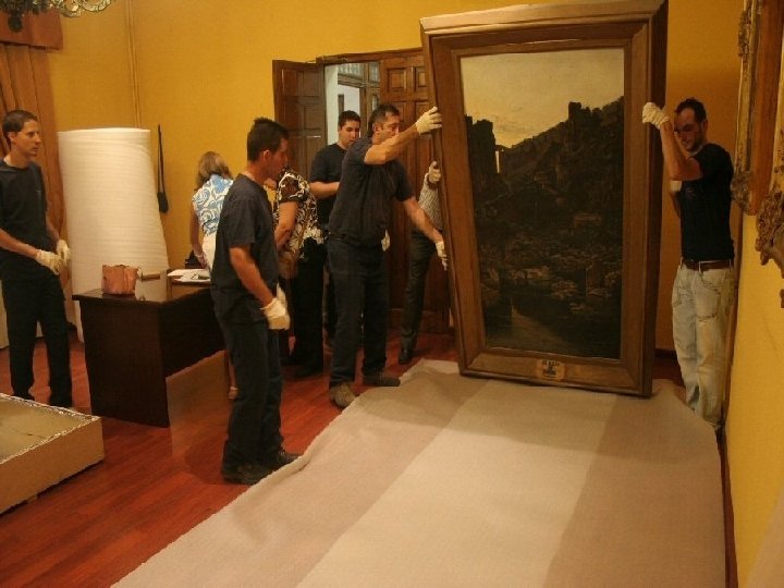 Traslado de las obras de una exposición TRASLADO Se lleva a cabo después del embalaje. Según el tipo de obra se prepara y se aplican las medidas pertinentes para esta fase que es una de las más complicadas para habilitar una exposición.