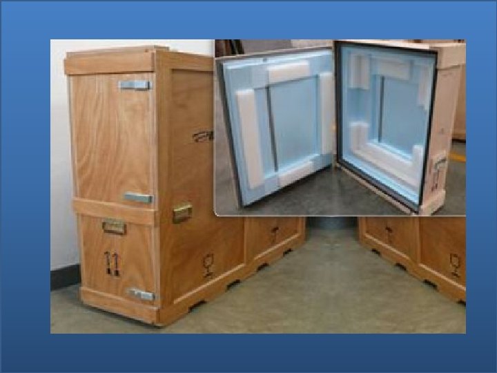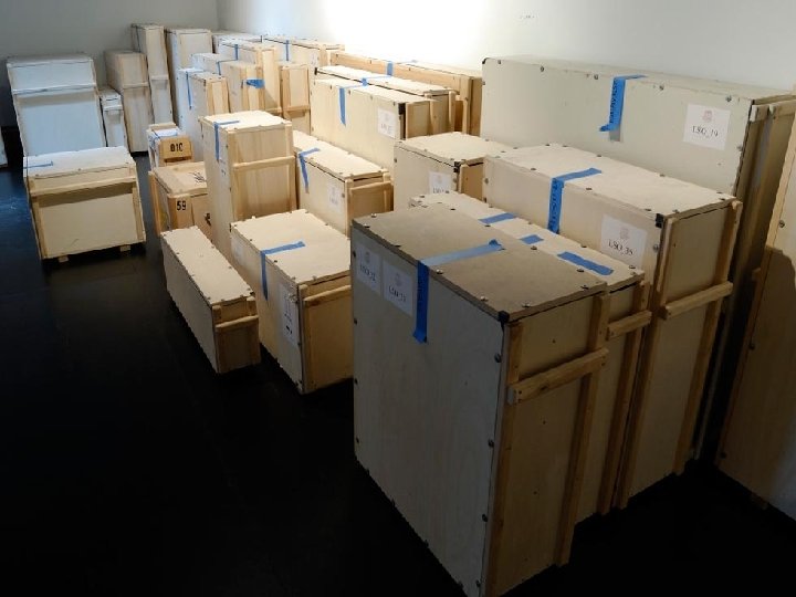 Transporte Varios museos exigen que sus colecciones sean transportadas VÍA AÉREA: 1. -costo de traslado más caro 2. - viaje más seguro, rápido y directo Las cajas abordan vuelos de carga con la menor cantidad de escalas hacia su destino, dado que los constantes cambios de presión no favorecen los distintos materiales de las obras