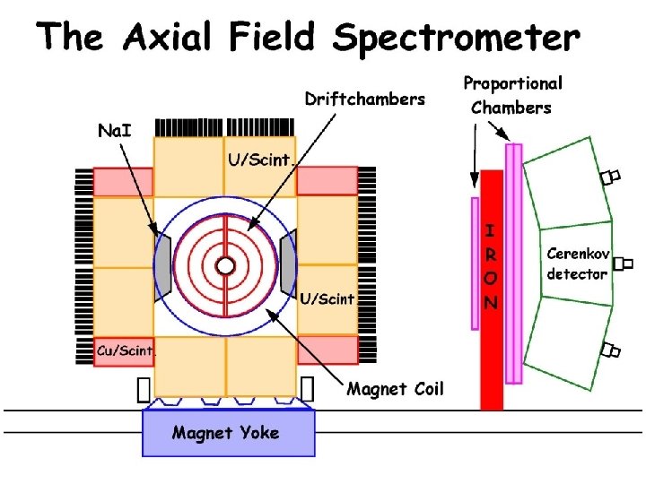 Identifiering av partiklar • Spektrometerarmen i föregående experiment innehöll bl. a. två sfäriska trycktankar fyllda med olika freoner. Dessa tjänade som hastighetsfilter för särskiljande av olika partikeltyper. Den komprimerade gasen hade ett lågt brytningsindex n och detektorn gav signal när partikelns hastighet var större än ljushastigheten i mediet c/n, där c är ljushastigheten i vakuum. • I nästa experiment (Axial Field Spectrometer) kompletterades hastighetsselektionen med ett mera lätthanterligt material som hade nästan lika lågt brytningsindex som en komprimerad freon, nämligen aerogel. Detta material utvecklades av Sten Henning och Leif Svensson Gullberg och en stor aerogeldetektor byggdes i Lund och installerades i den första fasen av AFS experimentet. Aerogeltekniken kom senare att utnyttjas i en hel rad andra intressanta applikationer.