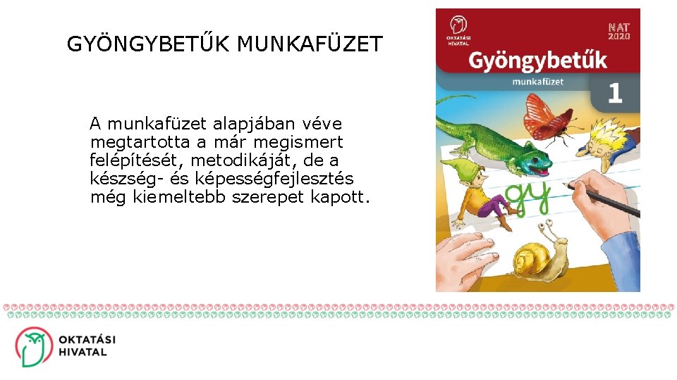 GYÖNGYBETŰK MUNKAFÜZET A munkafüzet alapjában véve megtartotta a már megismert felépítését, metodikáját, de a készség- és képességfejlesztés még kiemeltebb szerepet kapott.