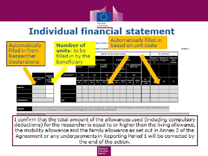 • B. 2 Management and indirect costs What is it used for? Costs associated with the preparation of the reports and other documents required by the REA: • Researcher declarations, deliverables, 1 st year progress report, periodic reports and final report. Personnel costs of the Project Manager. Maintenance of the consortium agreement. The overall legal, ethical, financial and administrative management for each of the beneficiaries. Indirect costs of the action.