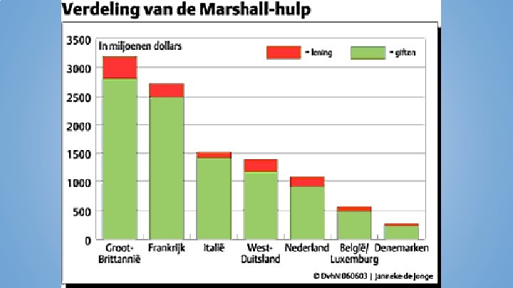 Marshallplan 1947 West-Europa loopt gevaar (chaos, communisme) VS stuurt de dokter om West-Europa te redden (Marshallplan)