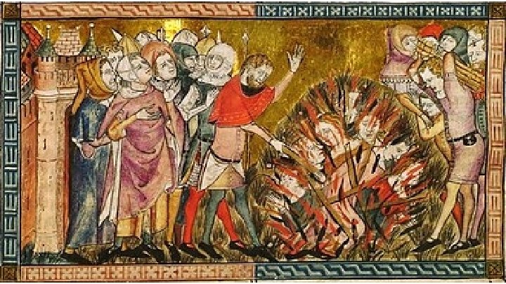 Joden in Europa Door diaspora joden verspreid over wereld en altijd een minderheid. Veel antisemitisme (jodenhaat) in Europa Vooral in middeleeuwen door uitbreiding van het Christendom. Joden krijgen vaak de schuld van ziekten zoals de pest en andere rampen Joden op de brandstapel in Duitsland tijdens de Zwarte Dood in 1348