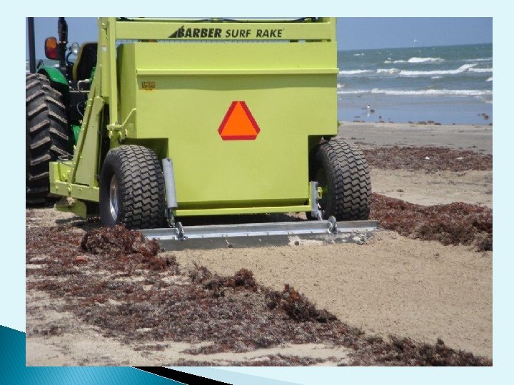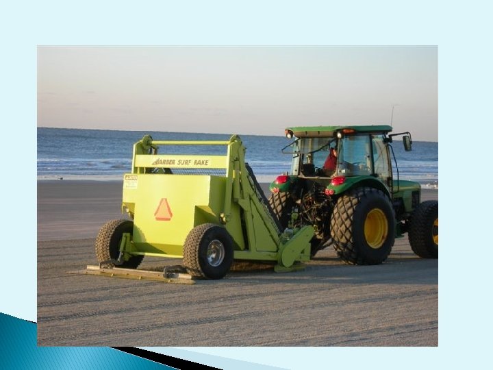 Methods of Beach Cleaning Every beach cleaner has a primary method of cleaning Scraping, Raking or Sifting Hybrids: ◦ Some rake and sift ◦ Some sift and rake Raking works best in wet sand applications such as removing sargassum from the tide line.