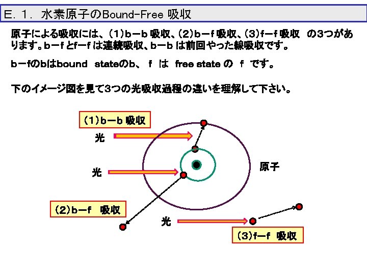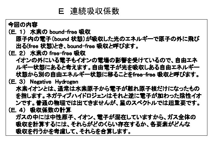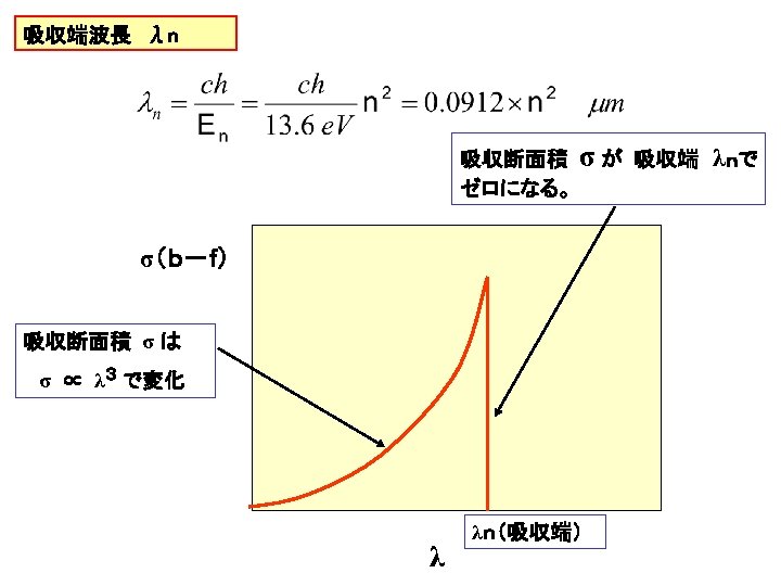 H原子のb-f 吸収断面積 σn(λ) n=1 n=2 n=3 n=4 Lyman cont. Balmer cont. Paschen cont. Brackett cont. 3 σn(λ) (10 -17 cm 2) 2 1 0 0 0. 5 1. 0 λ(μ) 1. 5