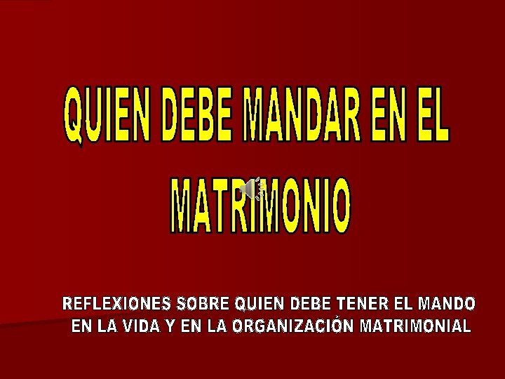 Hace ya algunos años, hablando con un buen amigo, me comentó en un momento de la conversación: -tú sabes bien como empresario que eres, que en una empresa no puede haber dualidad de mando, es decir que dos personas manden por igual en ella, sin que el criterio de una pueda prevalecer sobre el de la otra, puesto que, en el caso de discrepancia, por lo demás muy corriente en las relaciones humanas, surge el conflicto y la empresa se paraliza por imposibilidad de adoptar una decisión concreta ante cualquier asunto, con lo que esto supone de peligroso para la vida y la competitividad de la empresa. Pues bien, yo tengo serias dudas acerca de quién de los dos, debe mandar, para evitar esa peligrosa dualidad de mando en el gobierno de cada matrimonio como empresa de dos personas que es, aunque con características peculiares. Tú ¿qué piensas? ¿quién debe mandar en el matrimonio?