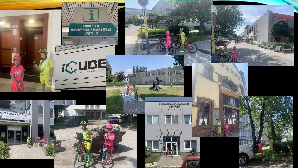 STANOVENIE A PLNENIE ÚLOH • Jupííííí, našli sme parádny špeciálny výťah v L-9 a posielame fotku kabíny, • Mierne sme sa presunuli, hopi, našli študentské informačné a poradenské centrum a tiež zasielame fotku jeho loga, • Kuk a cyklostojany so strieškou v areáli sme pohľadali tiež , posielame Vám fotku jedného z nich, celkovo sme po našej strase našli 4 cyklostojany, • Snáď sme v rámci univerzitnej zelene správne našli vedľa seba lipu a javor, posielame spoločnú fotku, • A máme ho, našli sme aj Bibliobox UK TUKE a zasielame jeho fotku, • Nájsť najväčší kameň bolo pomerne ľahké (snáď je to on), fotku zasielame, • Len o pár metrov ďalej sme objavili umelecké dielo na univerzitnom kruhovom objazde, pripomína nám unavené čísla sedem, ktoré odpočívajú - foto zasielame, • Pri budove PAIC sme sa trochu vytrápili, lebo nám ocko nechcel prezradiť význam skratky, ale my sme to dokázali !!! výsledok zasielame, • Nájsť krásnu budovu Campus gallery bola celkom hračka, ale priznávame, že jej históriu nepoznáme (fotku zasielame), • Hurááááá a sme na konci úloh, posielame fotografiu stromu s vtáčou búdkou. • Super sme sa zabavili - ĎAKUJEMEEEEEEEE