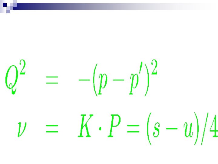 Elastic e. N scattering beyond one-photon exchange approximation Kinematical invariants : (me = 0) equivalently, introduce