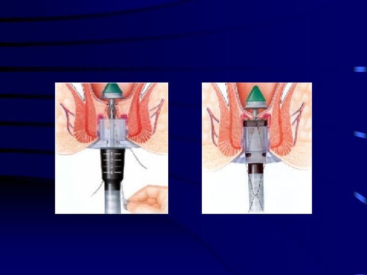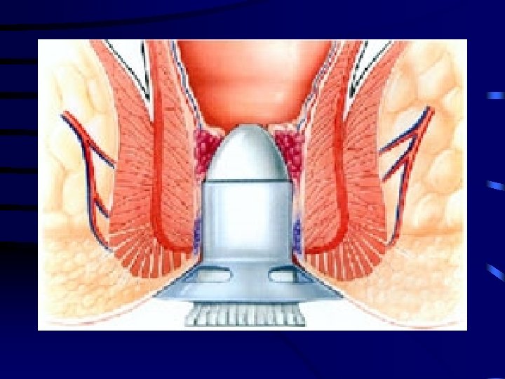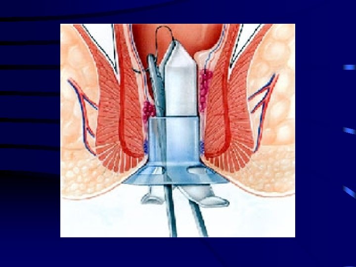 Rubber Band Ligation • More painful than other outpatient modalities, but similar complication rates • Complications – – Bleeding Vaso-vagal Thrombosis in adjacent external haemorrhoid (1 -11%) Pelvic Sepsis (1/10000)