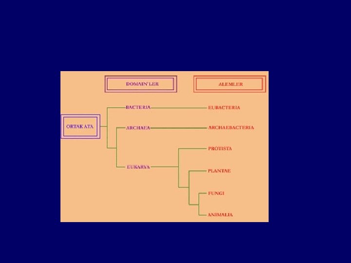• Carl Woese tarafından 1990 yılında yapılan ve canlıları hücre yapılarına göre öncelikli olarak 3 gruba ayıran sistemde, "Domain" adı verilen yeni bir taksonomi birimi kullanılmıştır. Alemden daha yüksek kabul edilen bu birim temeline göre canlılar, "Bacteria" "Archaea" ve "Eucarya" gruplarında toplanır.