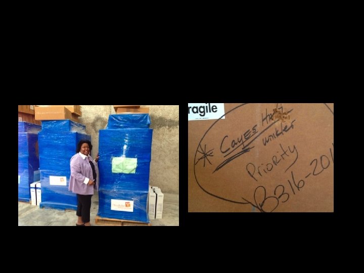 What We Accomplished • 5 complete rooms of ophthalmic equipment( Lombart Instrument) • 14, 000 pairs of reading glasses (Physicians for Peace) • 8000 bottles of prescription eye drops( Allergan) • SLT Laser • • Shipped by the Clinton Foundation Arrived April 2, 2010 in Port au Prince, Haiti